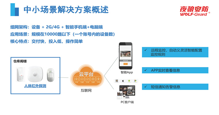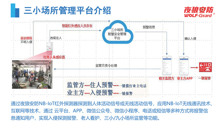 为了更好的保障三小场所的安全,夜狼安防推出三小场所消防解决方案,实时监测三小场所安全状况,将险情扼杀在萌芽状态,保护人们的生命财产安全。